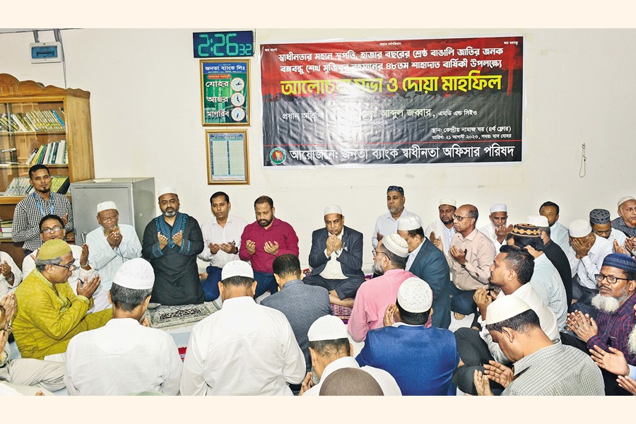 Janata Bank Swadhinata Officer Parishad organised a discussion and doa mahfil marking the National Mourning Day at the bank's head office in the city on Monday. MD and CEO of the bank Md Abdul Jabbar was present as the chief guest.