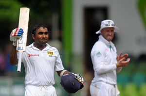 The stylish right-hander, due to retire from Test cricket next month, also shared 99 runs with opener Kaushal Silva (44) and another 97 with skipper Angelo Mathews, who was batting on 48 at the break.