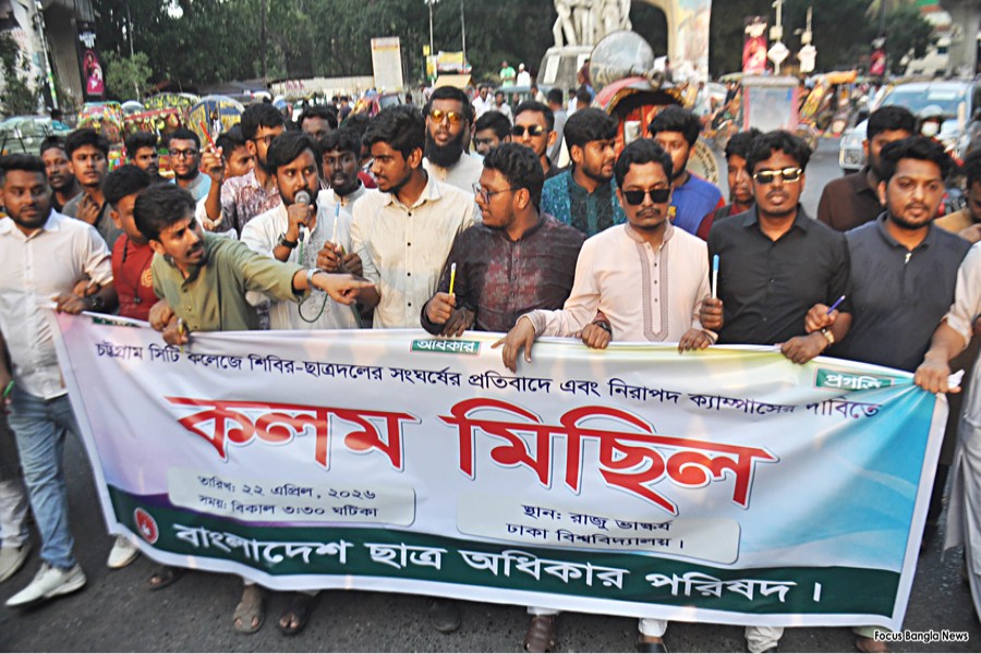 Members of Jatiyatabadi Chhatra Dal (JCD) have staged a demonstration on Dhaka University campus, protesting alleged attacks on students by Islami Chhatra Shibir over graffiti dispute in Chattogram.