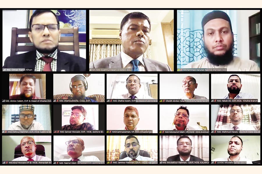 Khulna and Jashore zones of Islami Bank Bangladesh Limited organised a webinar on 'Compliance of Shari'ah in Banking Operations' recently on a virtual platform. Md Quamrul Hasan, director of the bank, addressed the webinar as the chief guest while Md Omar Faruk Khan, additional managing director, attended it as the special guest. Mohammad Harunur Rashid, member of Shari'ah Supervisory Committee of the bank, addressed as the key discussant