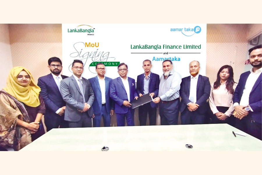 LankaBangla Finance Limited (LBFL) has recently signed an agreement with Aamartaka for its customer privilege. Head of Retail Business of LBFL Khurshed Alam and Managing Director of Aamartaka Md Mahmud Al Maruf Toufiq signed the agreement on behalf of their respective organisations. Under this agreement, from now on "Aamartaka will be sourced the prospective customers for LankaBangla credit cards".