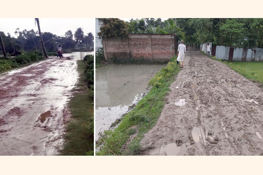 Locals have been suffering extremely due to the poor condition of Dharmapasha-Madhyanagar road in Sunamganj and Goyailbari Amtoli-Kumedpur Bazar road in Gaibandha.