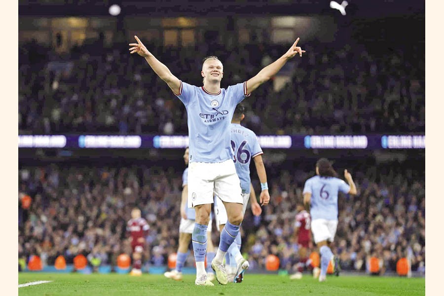 MANCHESTER, England, May 04 (AP): A new Premier League goals record for Erling Haaland and three more points for title-chasing Manchester City.