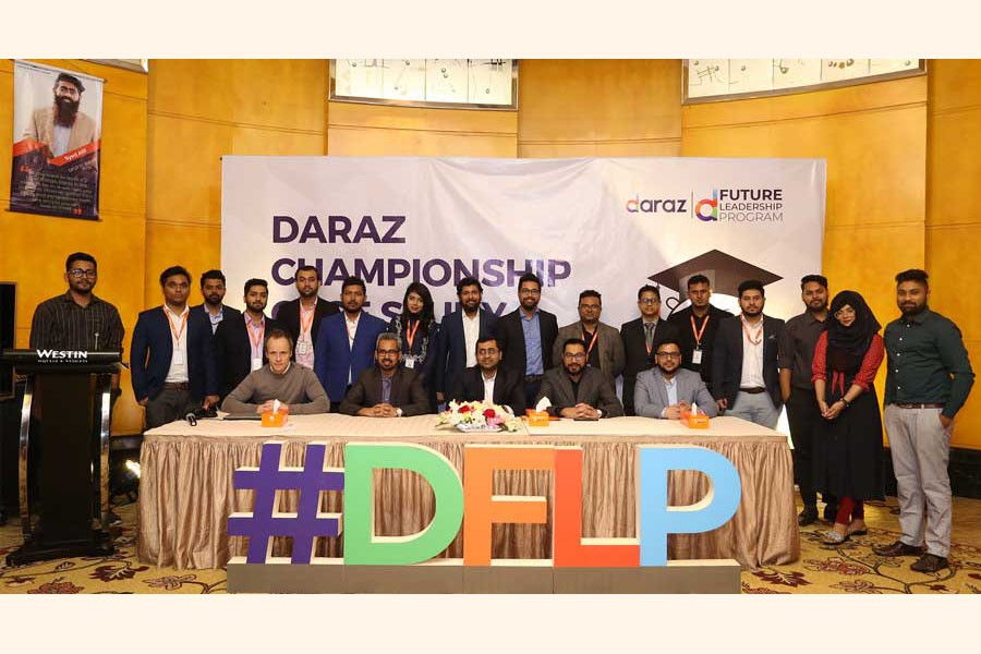 Managing Director of Daraz Bangladesh Syed Mostahidal Hoq posing along with the participants of "Daraz Future Leadership Program-2019 (DFLP)" at a city hotel recently