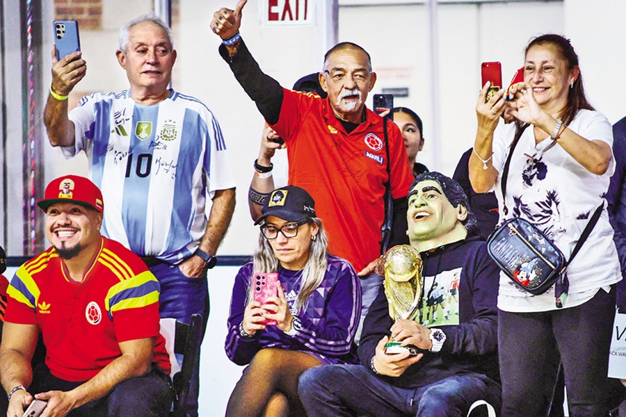 Football fans on Thursday attend the Legends Soccer Match in East Rutherford, New Jersey, United States, celebrating the birthday of Argentine football great Diego Maradona, who was born on October 30, 1960. — AFP