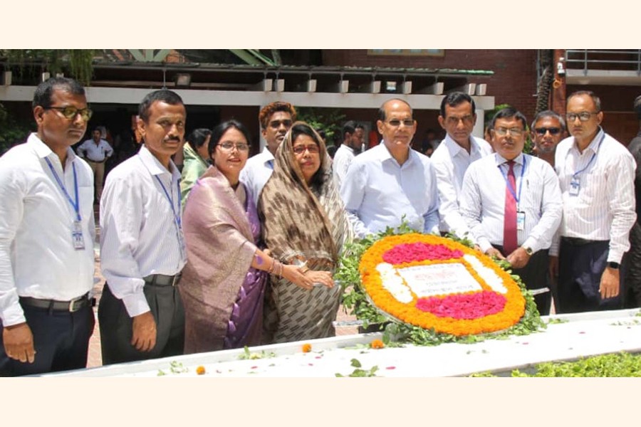 Chairman of Karmasangsthan Bank Md Sayedul Islam paid tribute to Father of the Nation Bangabandhu Sheikh Mujibur Rahman by placing a wreath at his mausoleum at Tungipara in Gopalganj on Sunday.