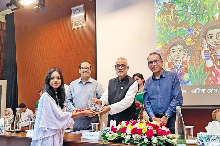 Environment, Forest and Climate Change Minister Md. Shahab Uddin distributes prizes as the chief guest at the closing ceremony of the World Environment Day 2023, celebrated with the slogan 'Beat Plastic Pollution' at the Department of Environment on Wednesday.