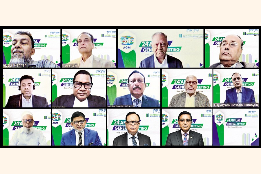 Mercantile Bank Limited held its 24th annual general meeting (AGM) virtually from its head office on Wednesday, with shareholders approving a 10 per cent cash and a 2 per cent bonus dividend. The meeting was chaired by Morshed Alam MP, chairman of the board of directors, with the presence of Md Quamrul Islam Chowdhury, managing director & CEO.