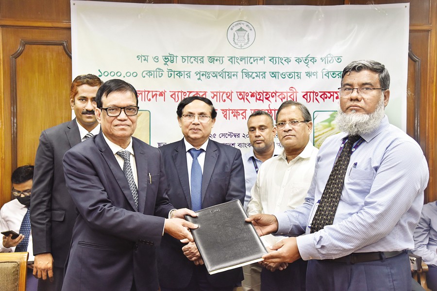 Mercantile Bank Limited recently signed an participatory agreement with Bangladesh Bank to disburse loan to wheat and maize farmers under the refinance scheme. Md Abul Kalam Azad, Director of Agricultural Credit Department of Bangladesh Bank, and Hasne Alam, DMD & CBO of Mercantile Bank, signed and exchanged the agreement at the conference hall of the central bank in presence of Deputy Governor A K M Sajedur Rahman Khan.