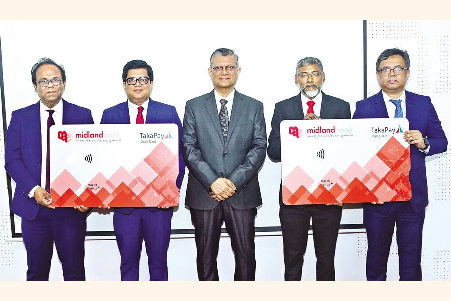 Midland Bank PLC (MDB) launched the 'Blind Notch Taka Pay Card' for its customers at a simple ceremony held at its Head Office in Dhaka recently. Md. Ahsan-uz Zaman, Managing Director & CEO of the bank, formally introduced the Taka Pay Card. The Taka Pay Card is Bangladesh's own payment card, introduced under the directives of Bangladesh Bank. It is primarily a debit card used exclusively for domestic transactions.