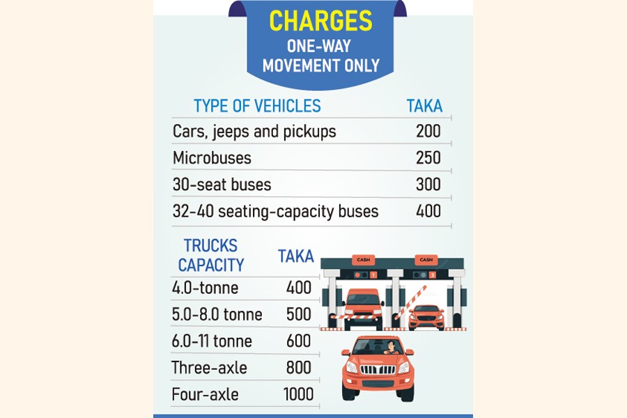 CHATTOGRAM, July 14: Road transport and bridges ministry has fixed toll rates for vehicles for using the 9.0-kilometre Bangabandhu Sheikh Mujibur Rahman Tunnel under the Karnaphuli.