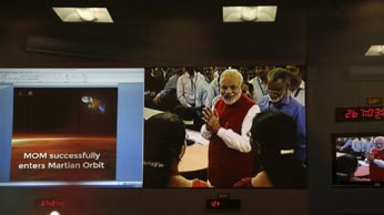 India triumphed in its first interplanetary mission, placing a satellite into orbit around Mars on Wednesday and catapulting the country into an elite club of deep-space explorers. In scenes broadcast live on Indian TV, scientists broke into wild cheers as the orbiter's engines completed 24 minutes of burn time to maneuver the spacecraft into its designated place around the red planet. ‘We have gone beyond the boundaries of human enterprise and innovation,’ Prime Minister Narendra Modi said in a live broadcast from the Indian Space and Research Organisation's command center in the southern tech hub of Bangalore. ‘We have navigated our craft through a route known to very few,’ Modi said, congratulating the scientists and ‘all my fellow Indians on this historic occasion.’ Scientists described the final stages of the Mars Orbiter Mission, affectionately nicknamed MOM, as flawless. The success marks a milestone for the space program in demonstrating that it can conduct complex missions and act as a global launch pad for commercial, navigational and research satellites, according to AP.