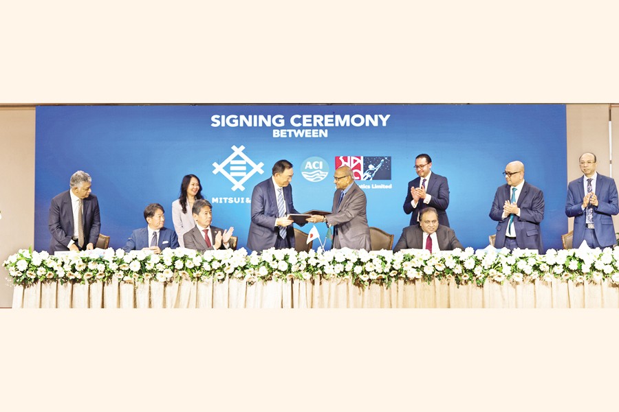 The signing took place on Wednesday at ACI Centre in the presence of signatories - ACI PLC Chairman Anis Ud Dowla; Managing Director Arif Dowla; Managing Director, ACIL, Sabbir Hasan Nasir; Kazuhide Nakajo, Chief Operating Officer, Consumer-Centric Business Development Unit, Mitsui & Co. (Asia Pacific) Pte Ltd; and other senior representatives from ACI group companies and Mitsui.