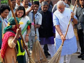 Making an appeal for a non-political movement driven by patriotism, Prime Minister Narendra Modi launched the Swachh Bharat, or Clean India, Mission on the birth anniversary of Mahatma Gandhi. The Mission will aim to make India ‘clean’ by October 2, 2019, Mahatma Gandhi’s 150th birth anniversary, Modi said. This goal will include the elimination of open defecation, which he called a ‘blot on society’, especially for women and young girls. Modi flagged off the mission at Valmiki Basti, a housing society in central Delhi for sanitation workers, in which Mahatma Gandhi once stayed for a short while. The PM swept a small area, paid his respects at a temple, dedicated public toilets to residents and conducted a surprise sanitation inspection on the local police station, news agencies reported – the event was off-limits for private media, according to thehindu.com
