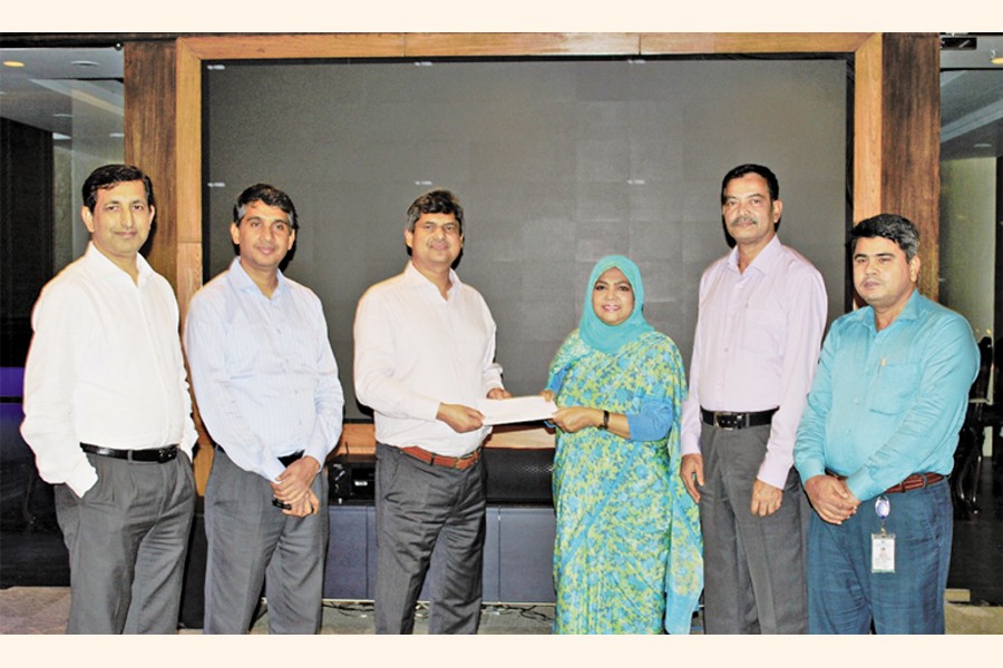 Mohammodi Khanam, handed over a cheque for Tk 5,10,888 to Md. Ruhul Alam Al Mahbub