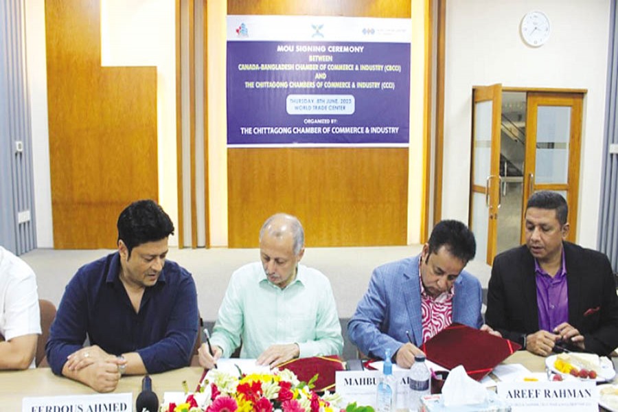 The Chittagong Chamber of Commerce and Industry (CCCI) has signed a Memorandum of Understanding (MoU) with the Canada Bangladesh Chamber of Commerce and Industry (CBCCI) to promote Bangladeshi products in Canadian market, reports BSS.