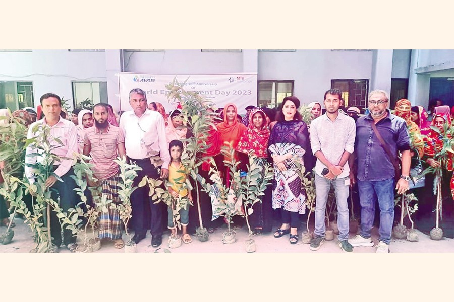 MTB Foundation, with a view to commemorating the 50th anniversary of World Environment Day and celebrating this year's theme - 'Solutions to Plastic Pollution', recently distributed mango and guava trees among the coastal women group of Ayla Patakata in Barguna as a continuation of its project, titled 'Alternative Livelihood through Environment-friendly Initiative for Coastal Women Group', in coordination with the Association of Voluntary Actions for Society (AVAS). Samia Chowdhury, chief executive officer, and Golam Rabbani, associate from MTB Foundation, were present at the event.