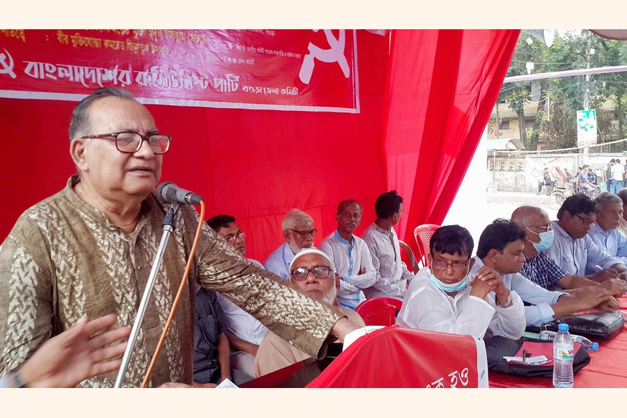 Former president of Communist Party of Bangladesh Mujahidul Islam Selim speaking at a rally organised by Bogura unit of the party in the district town on Friday — Focus Bangla