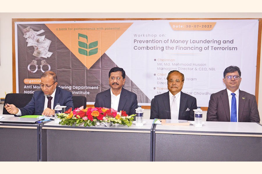 National Bank Limited organised a day-long training workshop titled "Prevention of Money Laundering and Combating the Financing of Terrorism" for the BAMLCOs of the Bank at National Bank Training Institute recently. Mr. Md. Rafiqul Islam, Director, BFIU was present as the Chief Guest and Mr. Md. Mehmood Husain, Managing Director & CEO of NBL, was present as the Chairperson in the workshop.