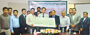 Atiquzzaman, Executive Director and CEO of BIFFL handed over the cheque jointly to Mamun Haider, Executive Director of SPEL and Md Asaduzzaman Khan, Managing Director (MD) of the IIDFC.