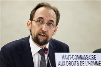 The world's No. 1 human rights priority should be bringing an urgent end to the gruesome conflicts in Iraq and Syria, the new head of the UN's human rights office said Monday. Zeid Raad al-Hussein, in his first speech to the Human Rights Council in Geneva after taking up his four-year post on Sept. 1, described Syria as a bloodbath. He said the Islamic State group formed from the civil war's chaos was an unprecedented force of violence against ethnic and religious groups that would be a sham if it were to establish a true state. ‘They reveal only what a Takfiri state would look like, should this movement actually try to govern in the future,’ Zeid said, referring to an ideology that shuns anyone who doesn't adhere to a stringent interpretation of Islam. ‘It would be a harsh, mean-spirited, house of blood, where no shade would be offered, nor shelter given, to any non-Takfiri in their midst,’ according to AP.