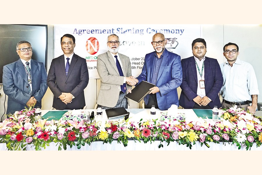Nitol Insurance Company Limited has recently signed a memorandum of understanding (MoU) with Adorsho Pranisheba regarding Cattle Insurance. SM Mahbubul Karim, CEO of Nitol Insurance Company, and Fida Haq, managing director & CEO of Adorsho Pranisheba, signed the MoU on behalf of their respective organisations.