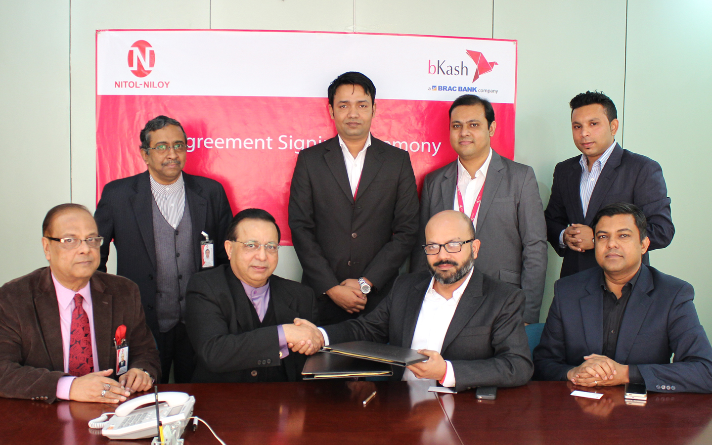 Nitol Motors Limited and bKash Limited recently signed an agreement under which bKash will collect monthly installments from Nitol Motors’s customers who purchase vehicles in installments. Abdul Matlub Ahmad, Chairman of Nitol Motors and Kamal Quadir, Chief Executive officer of bKash Limited signed the agreement on behalf of their respective organizations.Among others, S.A.H. Ismail, CEO,S.A. Farooqui, Director of Nitol Motors Limited and Rezaul Hossain, Chief Commercial Officer, Golam Anjumanarul Islam, Head of Business Sales, A.T.M. Mahbub Alam Manager, Enterprise and Solution and Md. Somel Reza Khan, Account Manager, Enterprise and Solution of bKash were also present at the signing ceremony, said a statement.