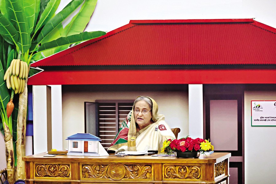 The premier was connected virtually with the beneficiaries and local people of three places while distributing the houses to the landless and homeless families on the sixth occasion since Mujib Year.