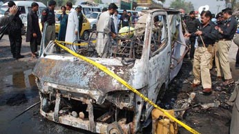 A bomb ripped through a mini-bus in northwestern Pakistan on Thursday, killing at least seven passengers, police said. The bombing, which took place on the outskirts of Peshawar, the capital of Khyber-Pakhtunkhwa province, also wounded four people, said Shafqat Malik, a senior police officer. The bomb had apparently been planted under a bus seat, he said, adding that police were investigating. Malik would not speculate on who could be behind the bombing but described it as ‘an act of terrorism.’ No one immediately claimed responsibility for the explosion, which came as the Pakistani military is waging a major offensive against the Taliban and foreign militants in the North Waziristan tribal region near Afghanistan. The army says militants have been on the run since the June launch of the operation, which also displaced over 800,000 people. Most of the displaced have been living with relatives or at camps in the northwest, according to AP.