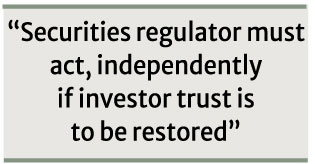 Interviewees said the securities regulator must act independently, without being influenced by politicians or businessmen, if investor trust is to be restored. Shortcomings stemming from a lack of experience can be overcome with integrity, management capacity and effort, they added.
