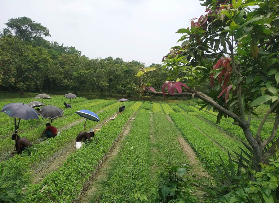 Peasants are busy planting seedlings at a nursery in Godaipur union under Paikgachha upazila of Khulna — Focus Bangla