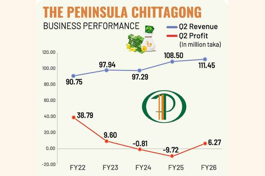The Peninsula Chittagong posted a profit of Tk 6.27 million in the second quarter (October-December) of FY26, rebounding from losses in the same quarter a year earlier, mainly due to reduced salary and tax expenses.