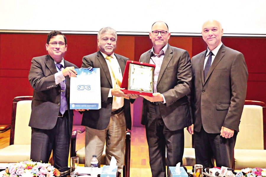 Peter Haas receiving a crest from Vice chancellor of North South University Prof Atiqul Islam