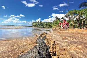 Photo: A dejected elderly person sitting helplessly on the bank of the Padma