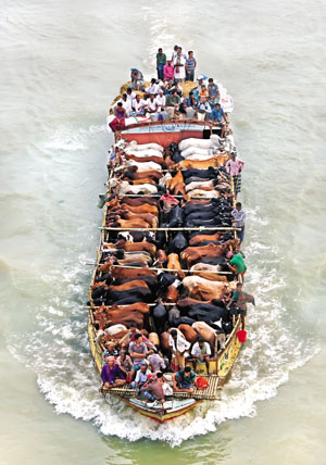 Photo: A trawler, laden with sacrificial animals, entering the capital through the Buriganga