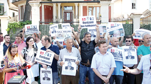 Photo: ALBANIA : Protesters hold placards