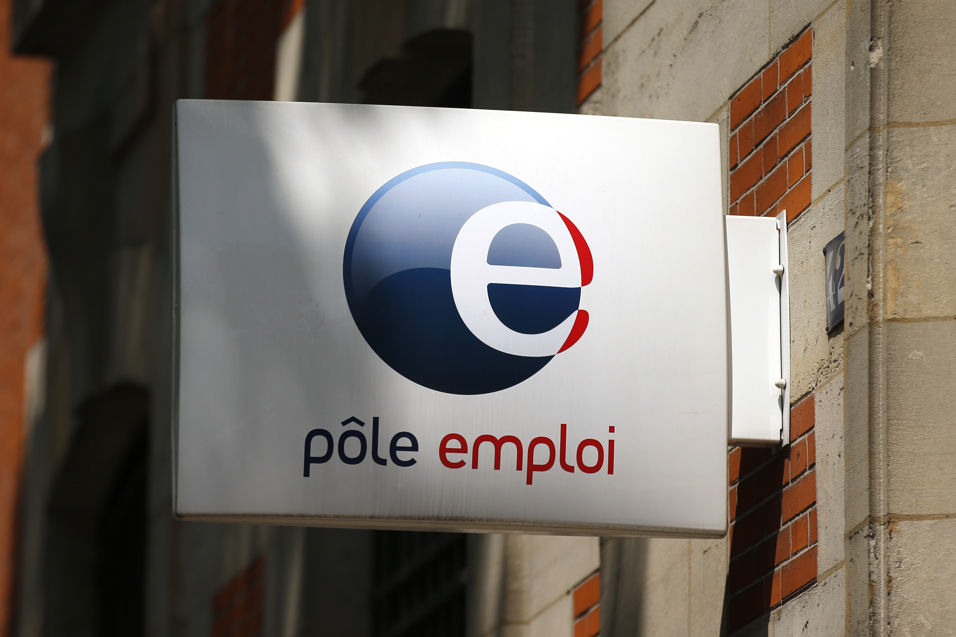 Photo: FRANCE: A logo is seen on the entrance of a Pole Emploi office