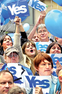 Photo: Holding \\\"Yes\\\" signs the pro-independence supporters