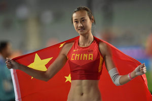 Photo: INCHEON: China\\\'s Li Ling celebrates after victory in the final of the women\\\'s pole vault