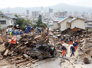 Photo: JAPAN : Rescue workers remove debris