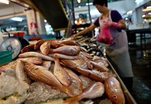 Photo: KUALA LUMPUR, Malaysia: A seller arranges stocks of fish