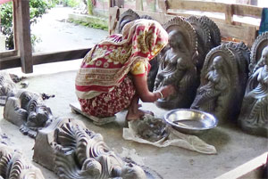 Photo: LAXMIPUR: An artisan giving finishing touches on statue of deity Durga