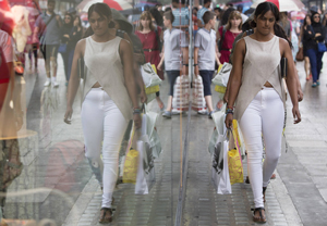 Photo: LONDON, Britain: A woman carries shopping bags