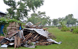Photo: PATUAKHALI: A cluster of houses downed by a devastating tornado