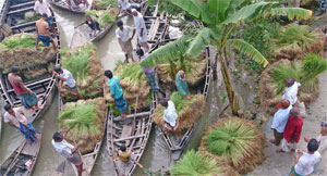 Photo: PIROJPUR: Hectic buying and selling of Aman saplings