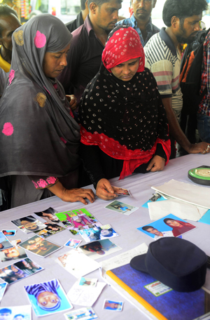 Photo: Relatives look through photographs of those missing