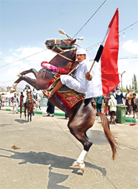 Photo: SANAA, Yemen: A Yemani man performing on a horse