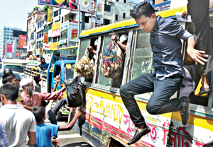 Photo: Scared passengers emerging out of a minibus