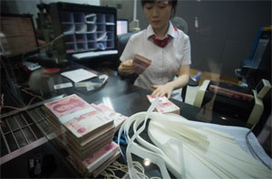Photo: SHANGHAI, China: A worker of an Industrial and Commercial Bank of China Ltd