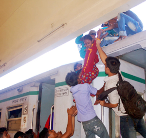 Photo: STRUGGLING TO DISEMBARK: People coming back to the capital